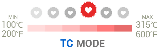 1.Temperature control function: By adjusting temperature in TC mode(Nickel 200), you can enjoy different vaping experience at different temperature settings.