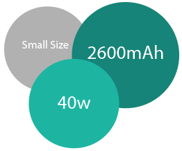 5.Large output and power capacity: Despite the small size, it can reach 40W output with 2600mAh power capacity.