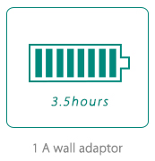 It will take about 3.5 hours to get a full charge via 1A wall adapter.The battery indicator will keep flashing during charging and the screen will go out when fully charged.